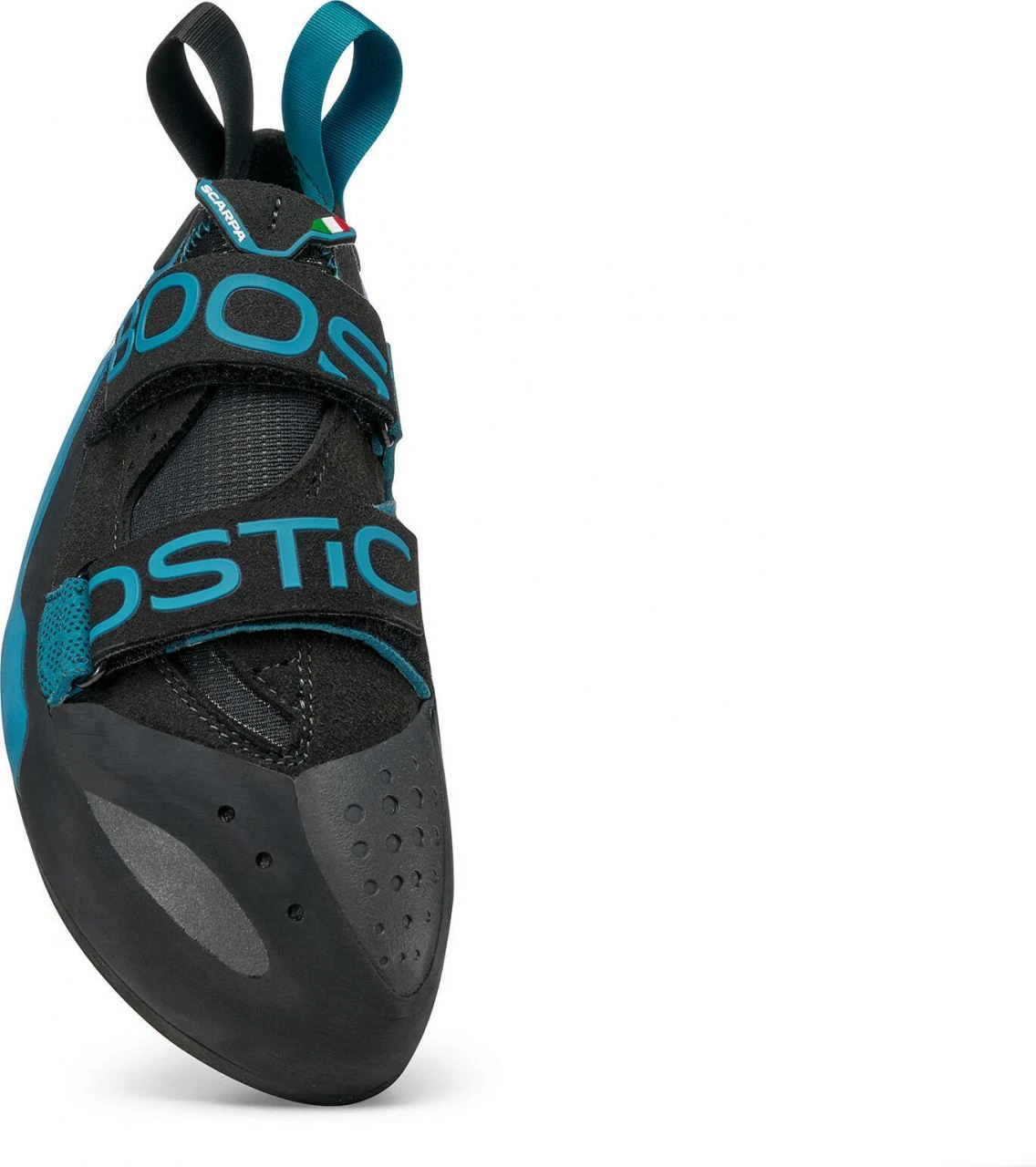 The new Boostic is the rock climbing weapon from SCARPA. Specially developed for technical wall climbing, ideal for vertical rock climbing. The strong asymmetric shape with strong downturn offers the best possible performance on the smallest steps and especially support when standing on small edges, even over a longer period of time.