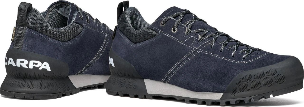 The Kalipè GTX is a fashionable approach shoe with GORE-TEX membrane for the best possible weather protection. The upper is made of a pleasant to wear suede leather, which provides comfort. In addition, the large scree protection and rubber toe cap provide further protection. The lacing system adopted from the climbing world, which extends to the toes, guarantees the best possible fit. The flexible but non-slip rubber outsole provides a good grip. This approach shoe brings all the features you need to get to the rocks.