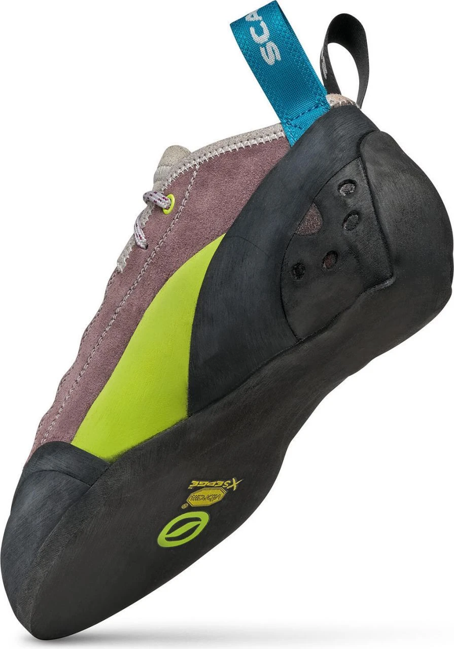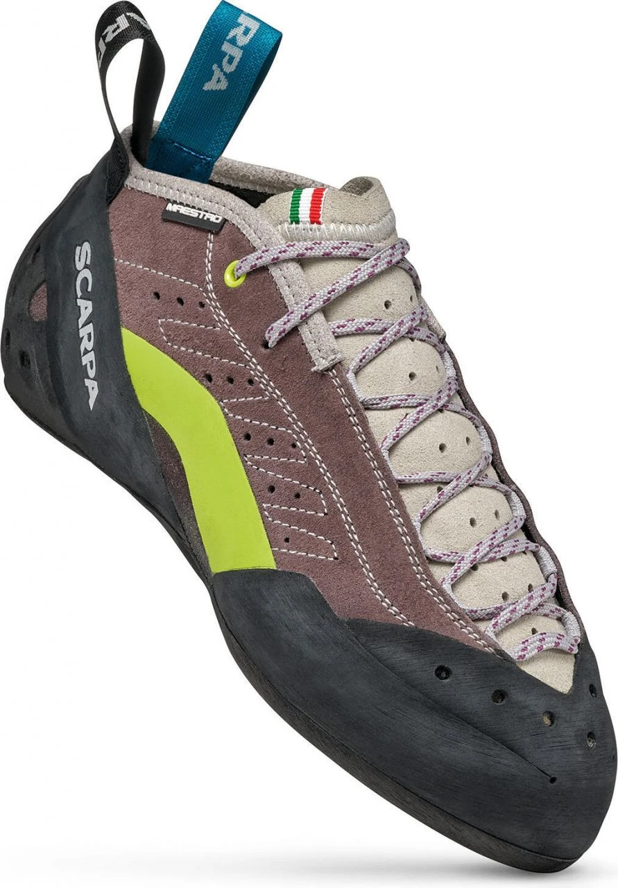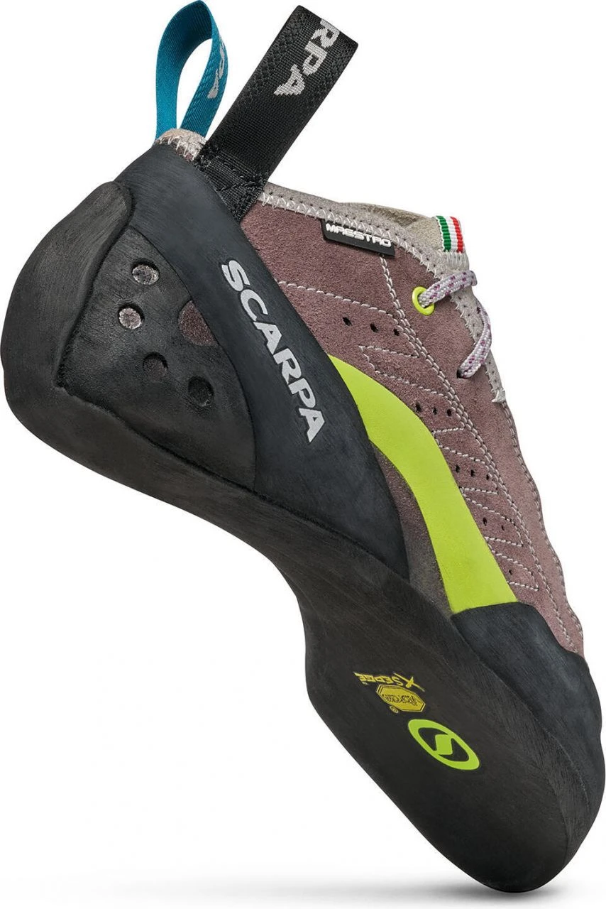 The Maestro Mid Eco Wmn is the perfect climbing shoe for multi-pitch and crack climbs. The upper, which is raised to the ankle, is made of microfiber and leather cut parts that are sewn together so that the shape fits perfectly to the foot without causing pressure points. The midfoot receives perfect support from the IPC tension system and from a full-length Flexan insert, but at the same time enough flexibility to keep standing on friction. A slight downturn and slightly angled toe box provide good power transfer and a comfortable feel. The full Vibramยฎ XS Edge sole rubber is grippy enough to stand on friction with it while providing very good support to the foot muscles over a long period of time.