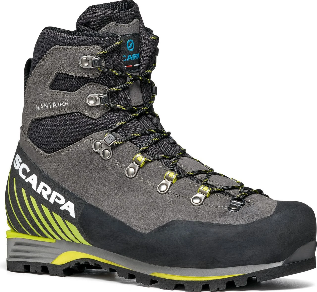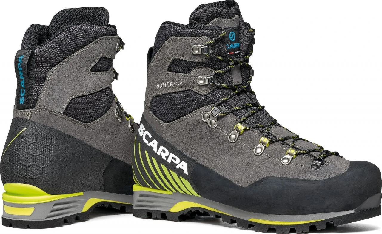 - External material: Water repellent Perwanger 3mm suede upper EXO SCARPA ankle padding for support and structure. Rubber rand provides protection, abrasion resistance on rock as well as reducing pressure from crampon bindings. PU Tech heels
