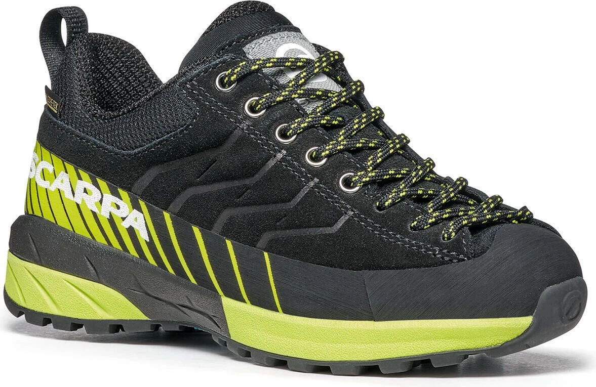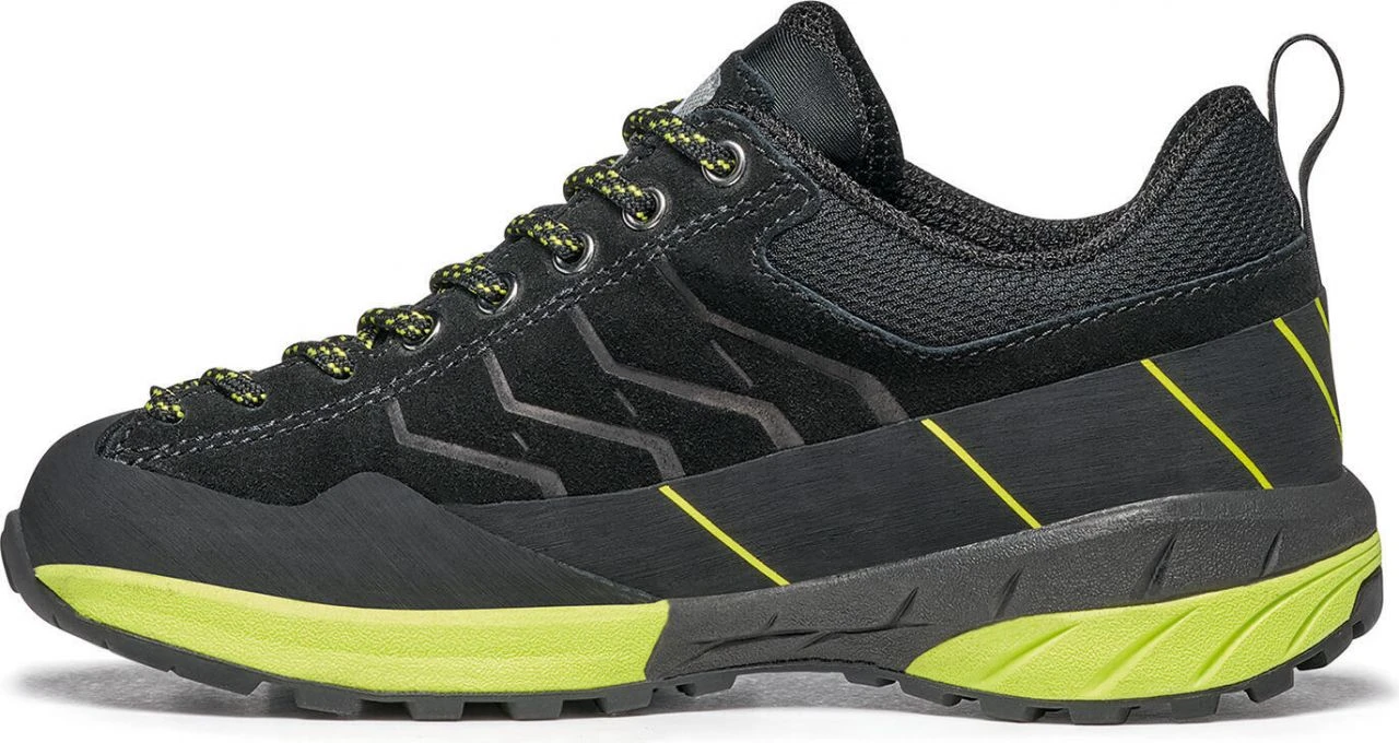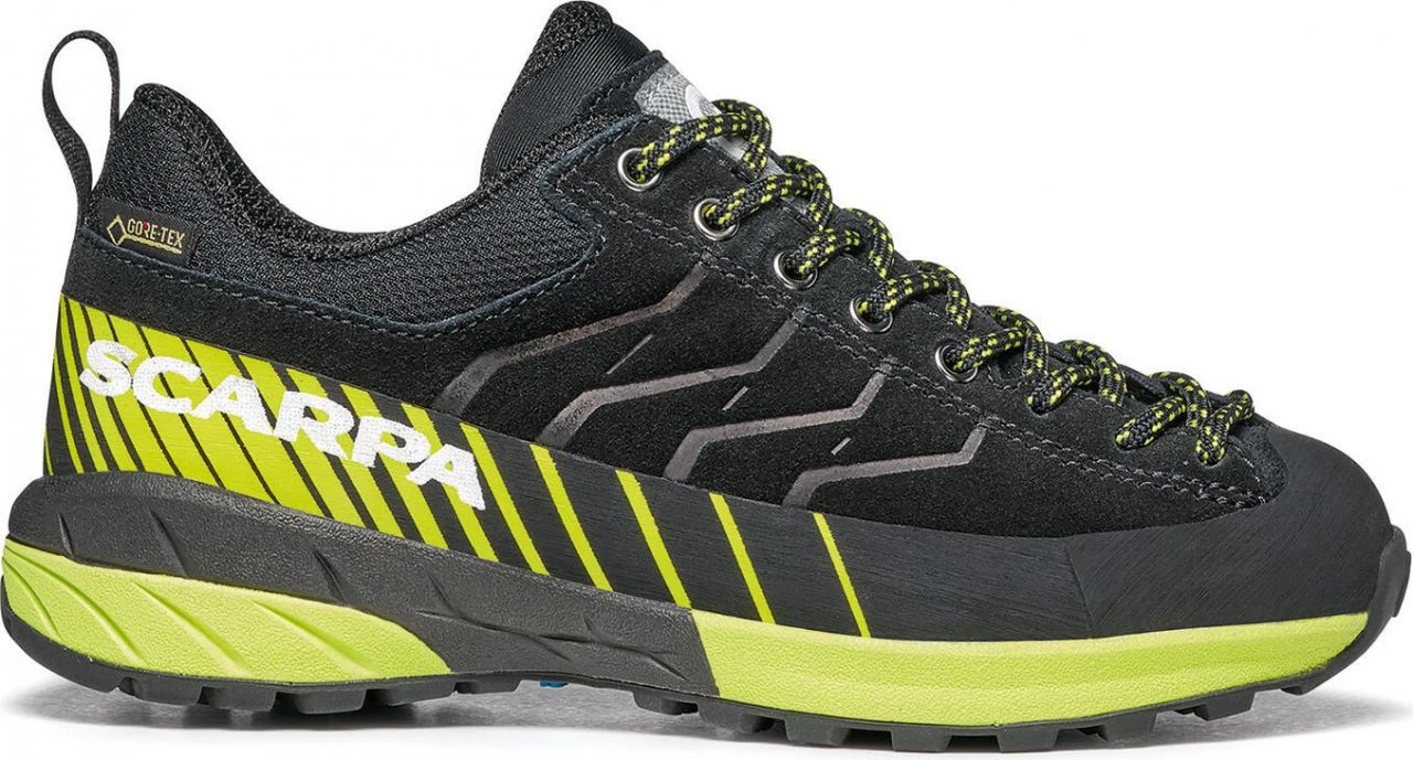 The Mescalito Lace Kid GTX makes the partner look with parents perfect. The water-repellent upper material makes for a robust shoe that is suitable not only for leisure in the outdoor children’s everyday life, but rather also for hikes in the terrain. In addition, it is equipped with a Hochgezogenem Geröllschutzrand and is so also for geröllige paths best einsetzbar. With the waterproof and breathable GORE-TEX lining, the feet stay dry even in rain showers. The far forward lacing system, which extends to the toes, guarantees an optimal adjustment possibility. This makes these shoes well suited especially for children with particularly narrow feet.