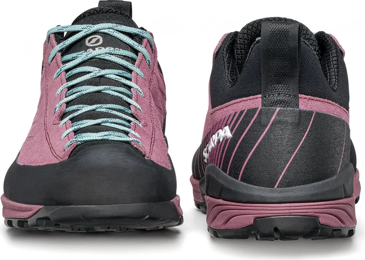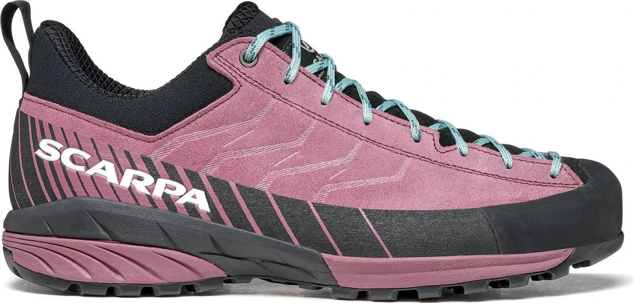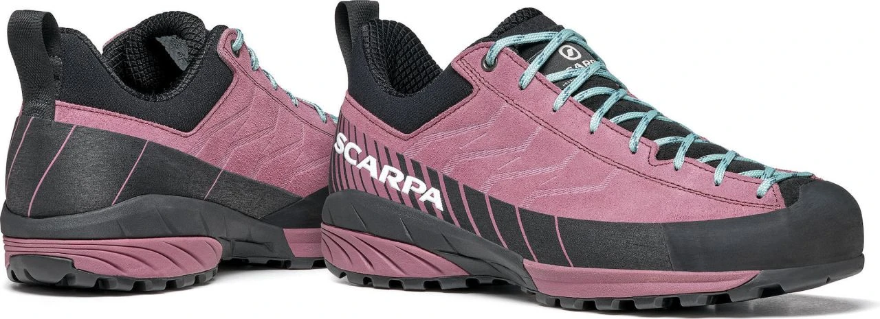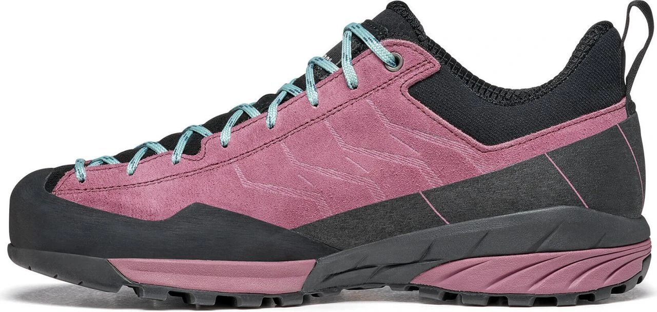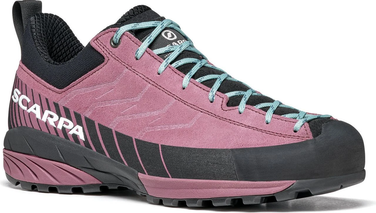 The Mescalito Wmn is the classic approach shoe. The water-repellent leather upper with an elastic cuff provides maximum comfort. The cushioning EVA midsole, as well as the Vibramยฎ sole, provide the best stability and an excellent wearing feel. The climbing zone in the toe area is ideal for short climbing inserts. The lacing system adopted from the climbing world, which extends to the toes, guarantees the best possible fit and thus brings the best control and power transmission in climbing passages. Whether you wear the Mescalito for technical ascents, easy climbs or via ferrata, the shoe always guarantees you the best approach.