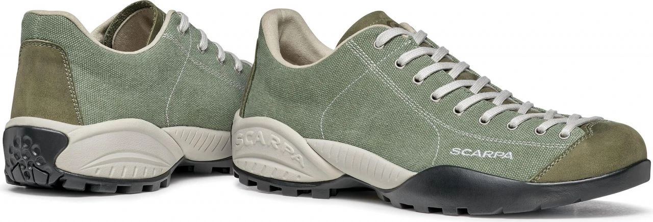 The Mojito Canvas is a breathable and lightweight casual shoe from the Mojito family. The lifestyle shoe combines solid comfort with a cool look. Thanks to its lightweight canvas upper, it is reliable, breathable and perfect for warmer temperatures. The tongue and toe box are made of leather. The lacing system adopted from the climbing world, which extends to the toes, guarantees the best possible fit. Should it ever go out into nature, the reinforced toes and heels offer you optimal protection.
