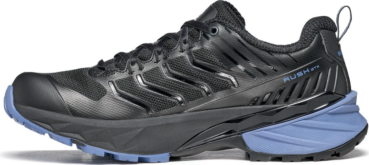 The Rush GTX Woman is an agile shoe that represents the perfect compromise between trail running and hiking. The GORE-TEX membrane provides the perfect weather protection. The mesh upper with welded PU reinforcements fits, thanks to the Sock-Fit LW construction, like a sock to the foot and thus avoids any pressure points, guarantees maximum comfort and a precise fit. For an optimal rolling behavior provides the cushioning at the heel, midfoot and forefoot.
