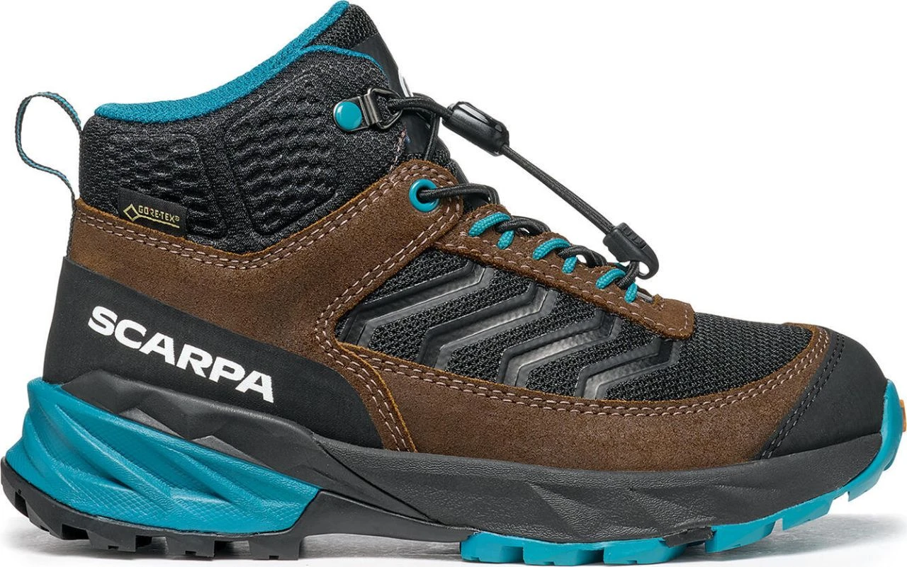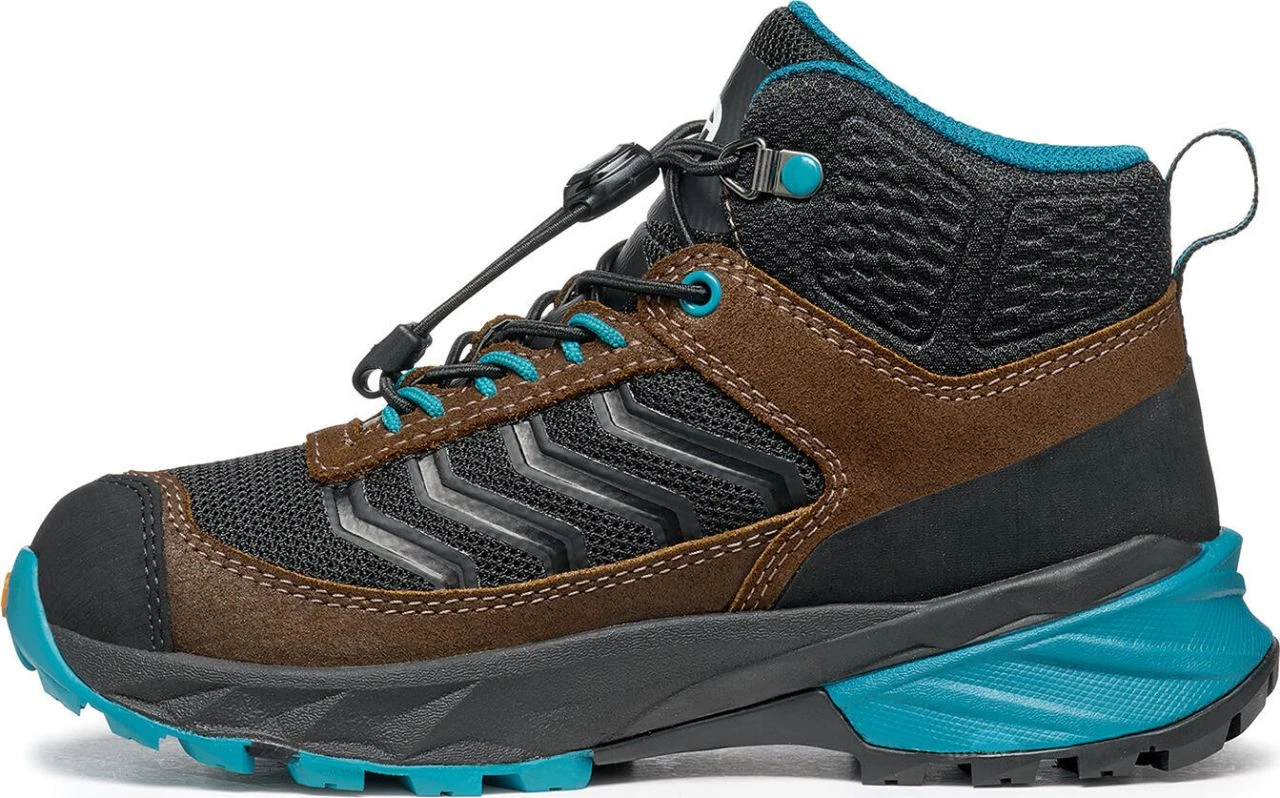 Outdoor children’s boot made of technical nylon and suede leather with a waterproof and breathable Gore-Tex® membrane. The Presa® sole with two-tone Supergum rubber compound and ultra-light EVA midsole provides a comfortable roll and protects the child’s foot. The high shank wraps around the ankle for added protection and comfort. The kid-friendly lacing ensures perfect pressure distribution and a unique fit. The Rush Mid S Kid GTX is a strong, protective companion for cold and rainy conditions and is particularly suitable for winter in the city, medium-heavy hikes and light trekking.